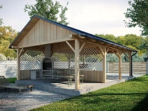 | Название модели: | Деревянный авто-навес с зоной барбекю №115 |